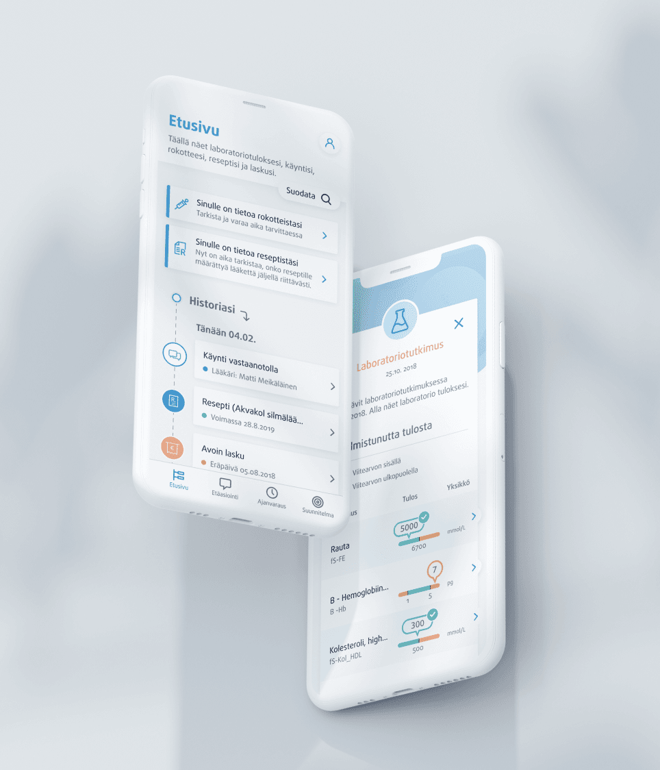 Based on the gathered insight we designed an intelligent, data-driven Oma Terveys mobile application that helps customers manage their health in the long term. The application works at all stages of the customer path to better health and it keeps the customer informed of what happens before, during and after each appointment.